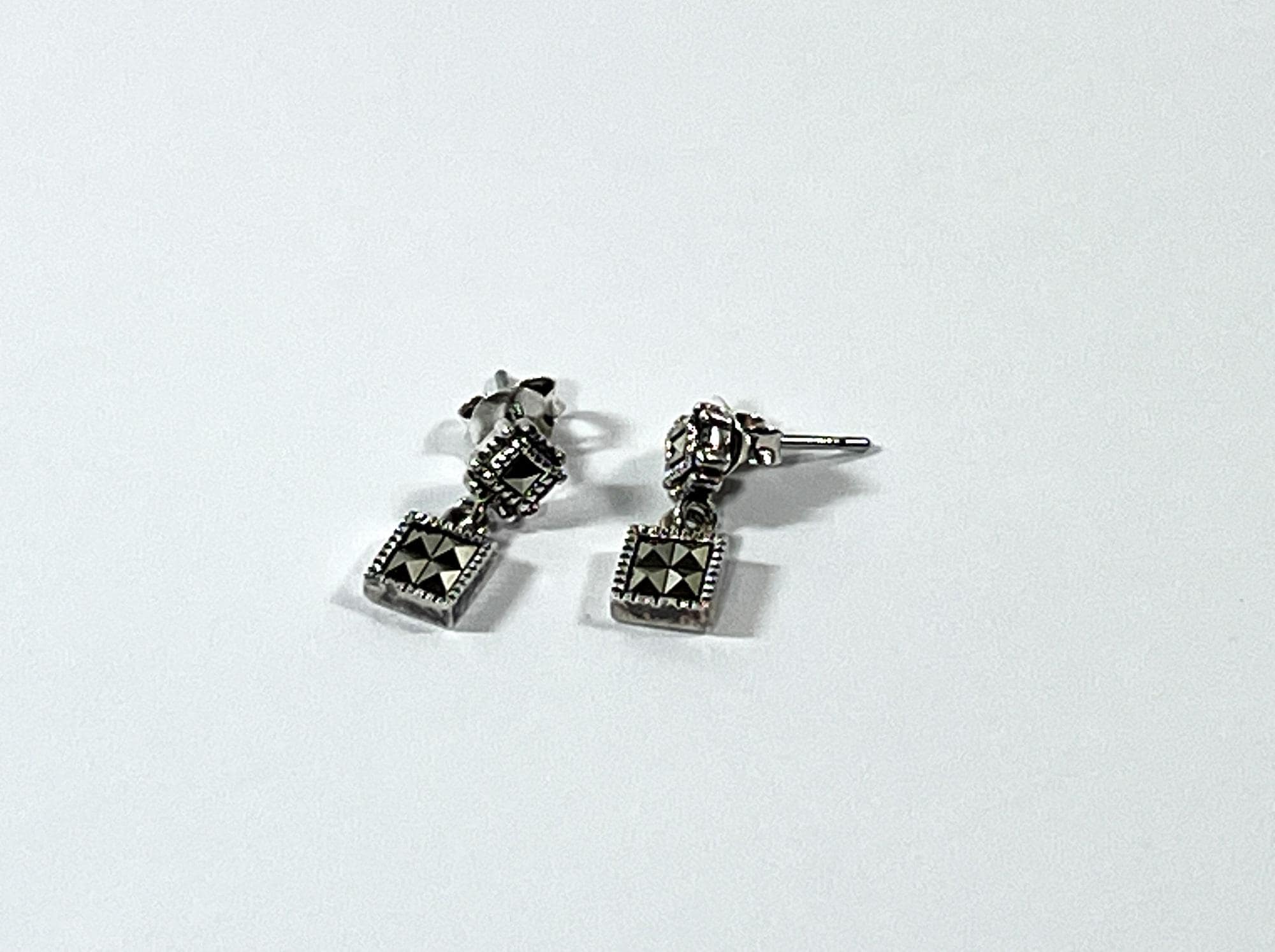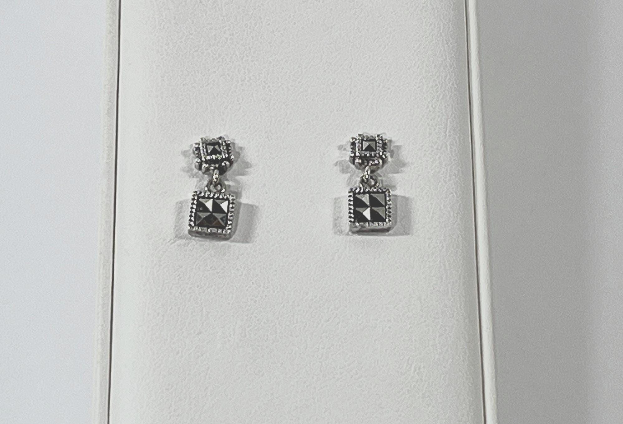 VINTAGE 1980's JUDITH JACK™ STERLING SILVER & MARCASITE SMALL DANGLE EARRINGS.