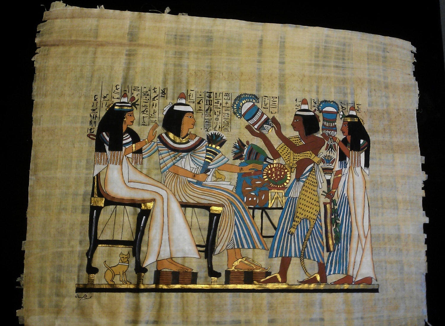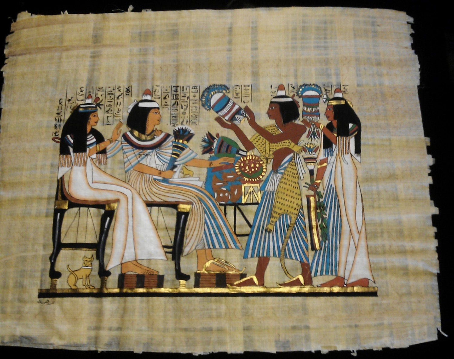 VINTAGE EGYPTIAN HAND PAINTED GENUINE PAPYRUS FEATURES THE ANCIENT EGYPTIAN FLOWER GIRLS