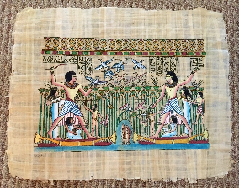 VINTAGE EGYPTIAN HAND PAINTED GENUINE PAPYRUS