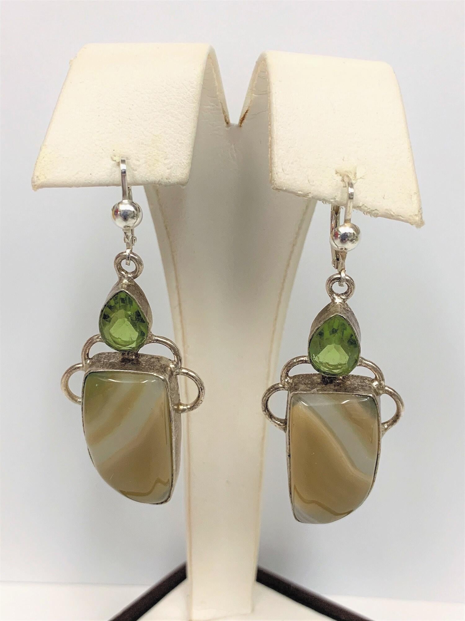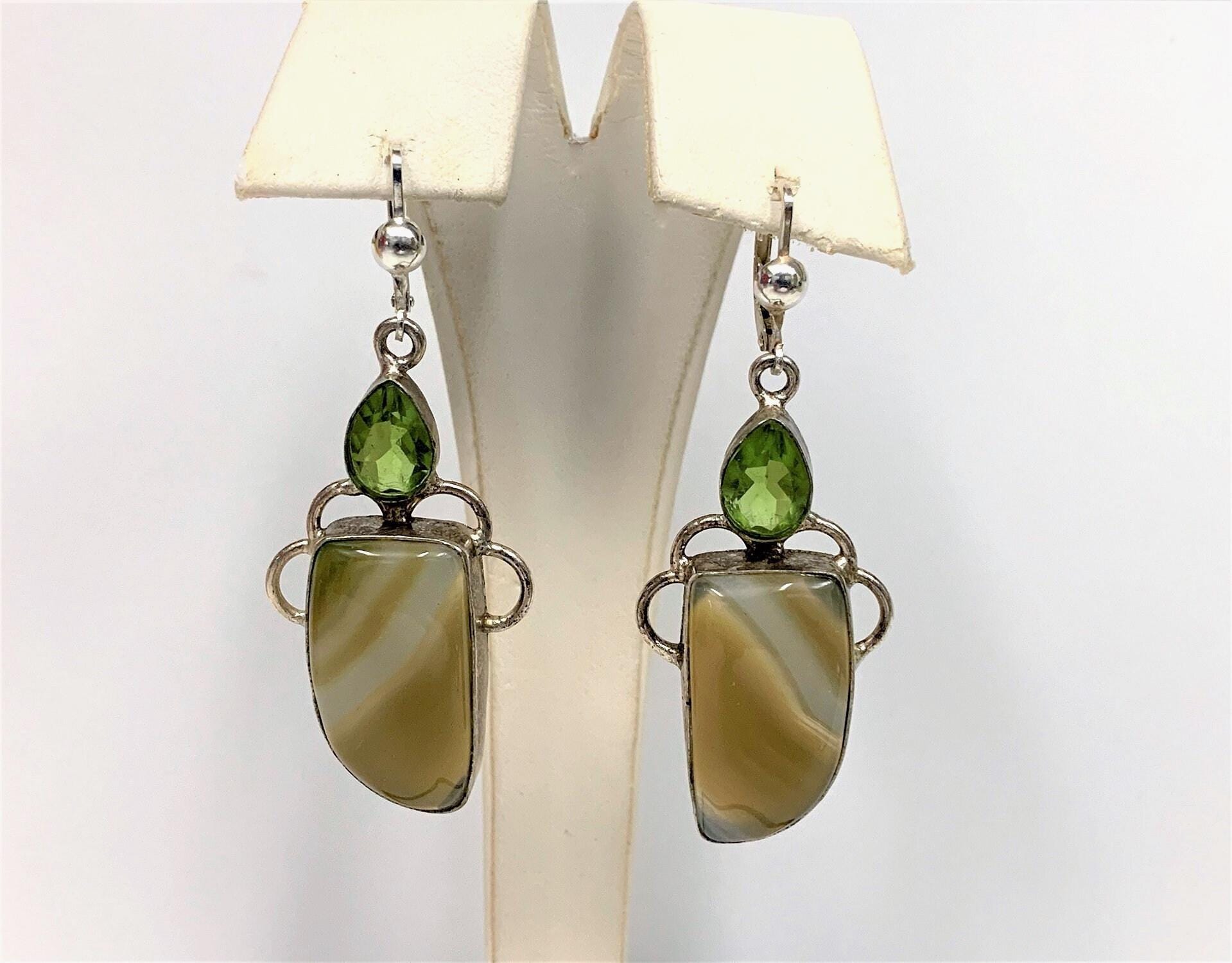 VINTAGE STERLING SILVER GEMSTONE DANGLE EARRINGS, HAND CRAFTED