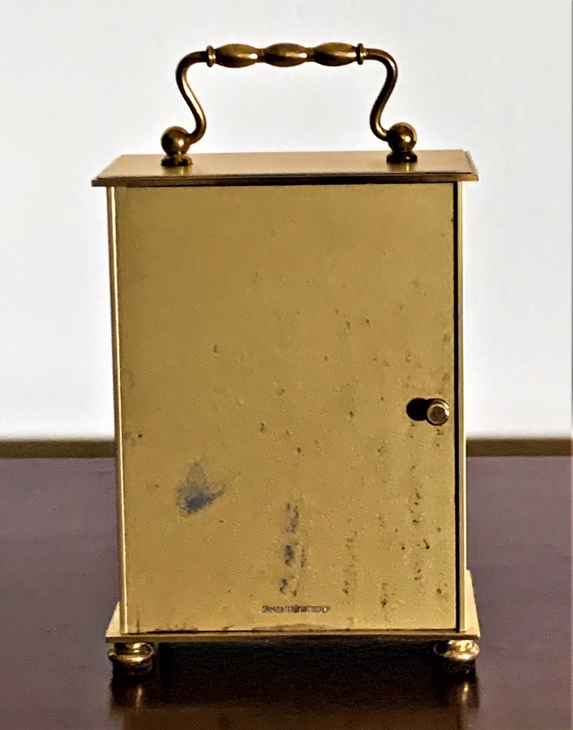 BRASS CONTRAST DIAL WITH ROMAN NUMERALS AND SECONDS HAND.