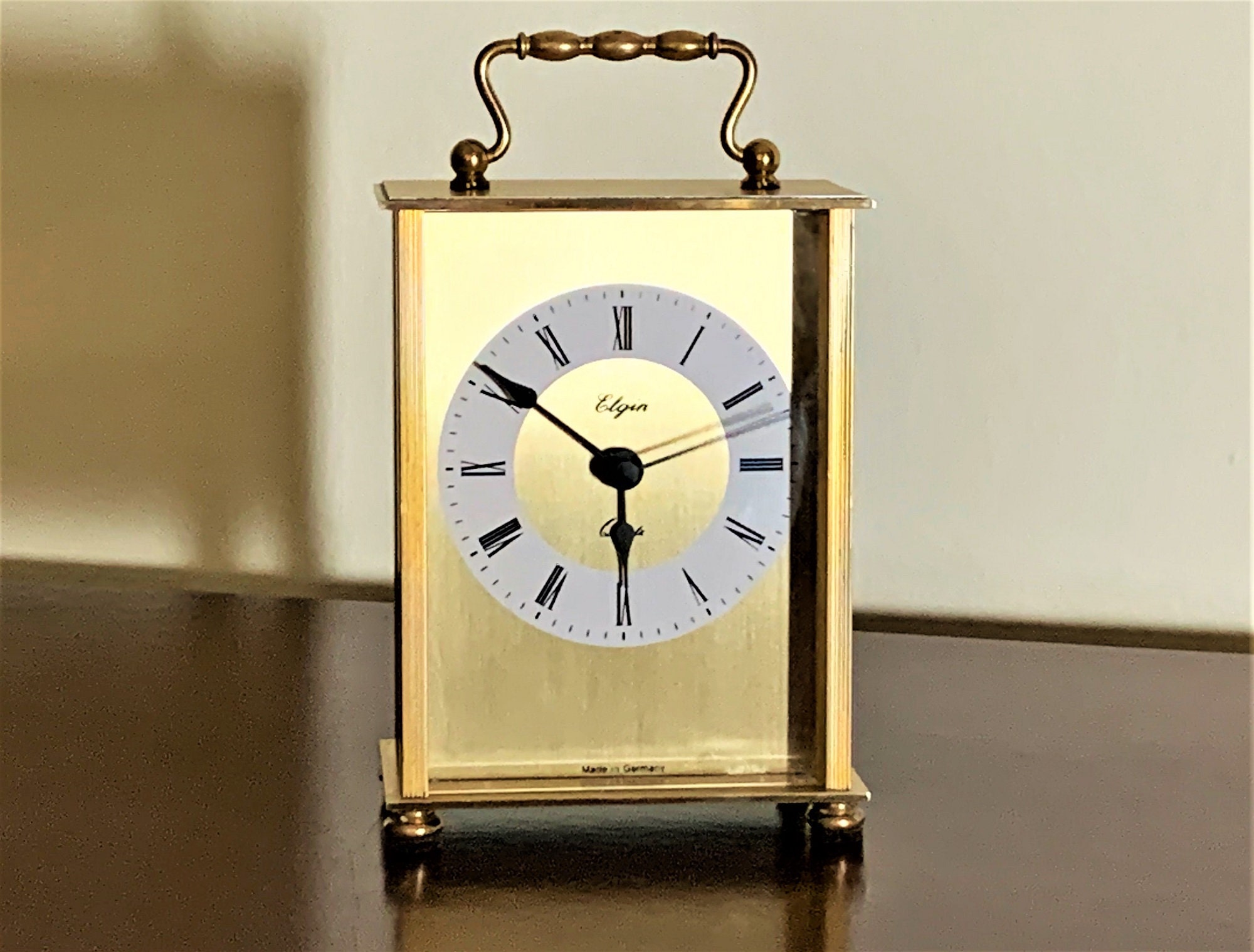 VINTAGE ELGIN BRASS CARIAGE MANTLE CLOCK