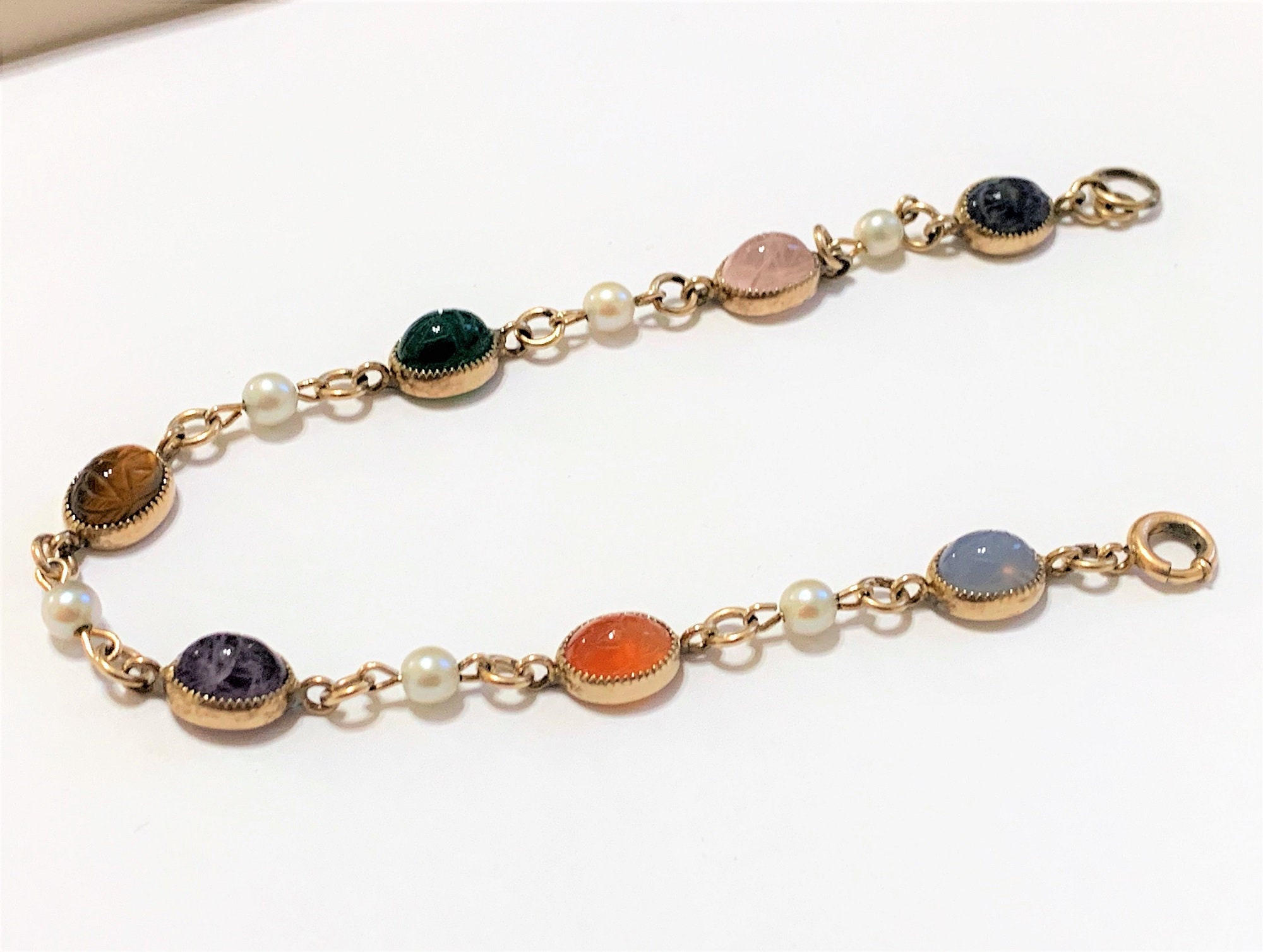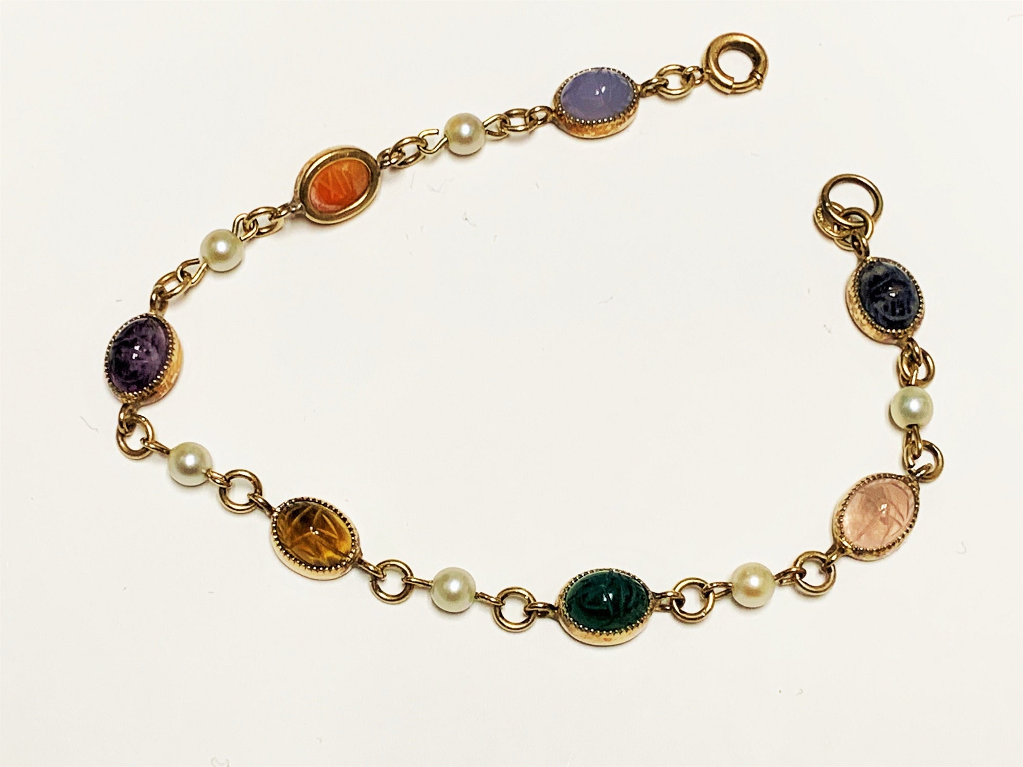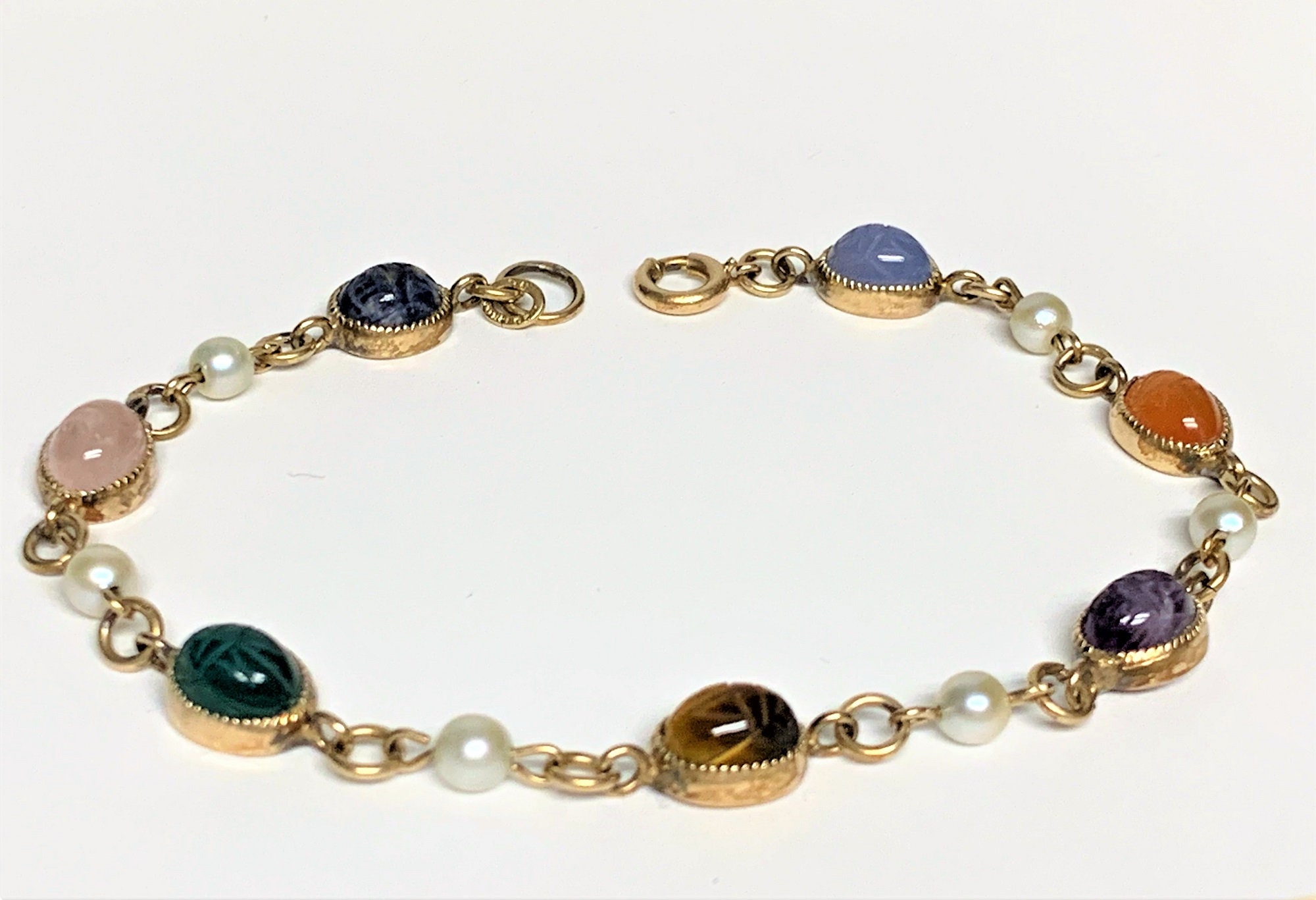 VINTAGE ORIGINAL GEMSTONE SCARAB BRACELET.