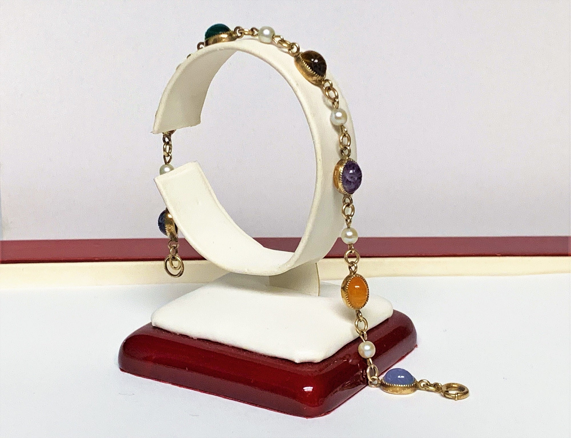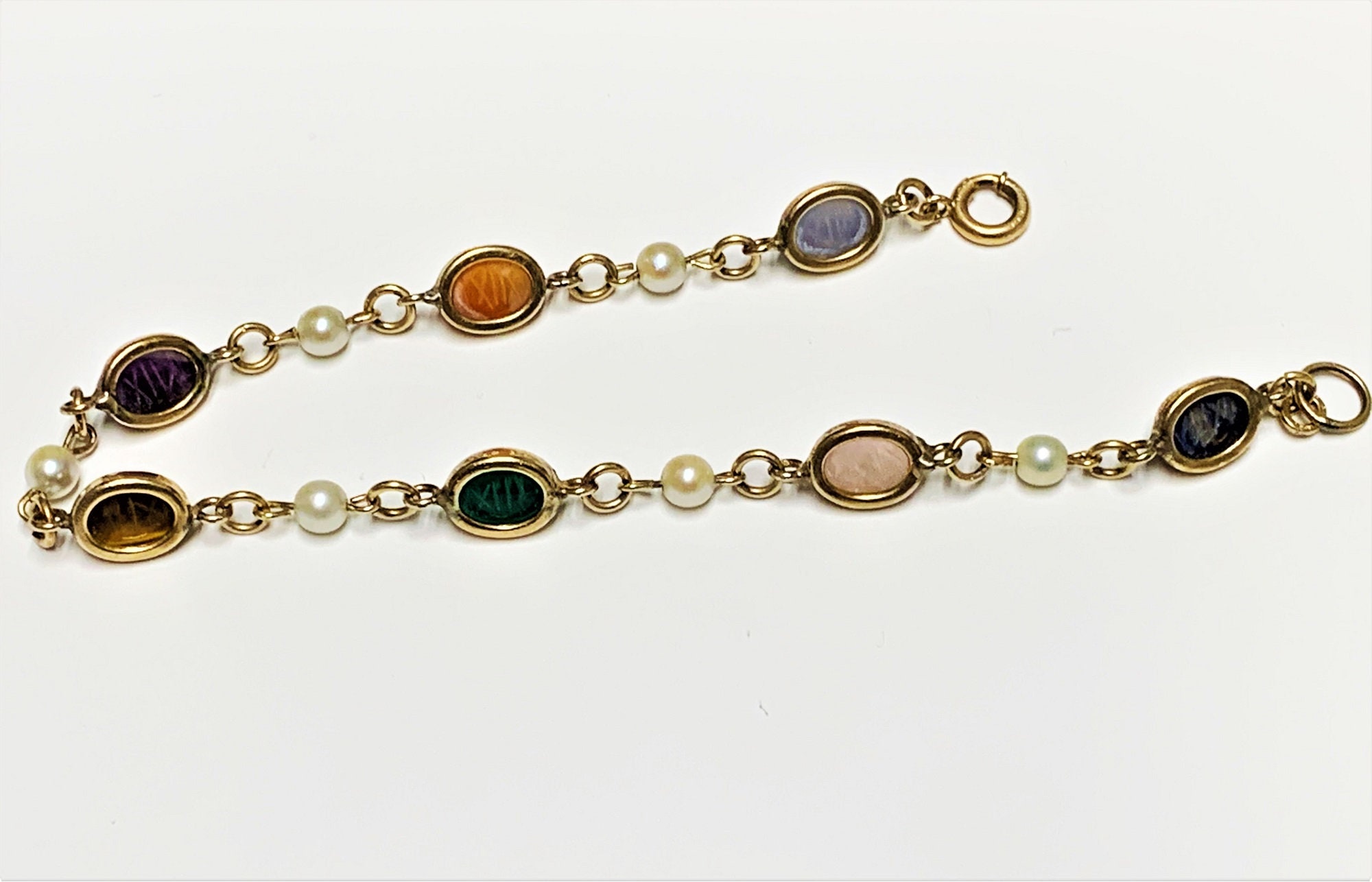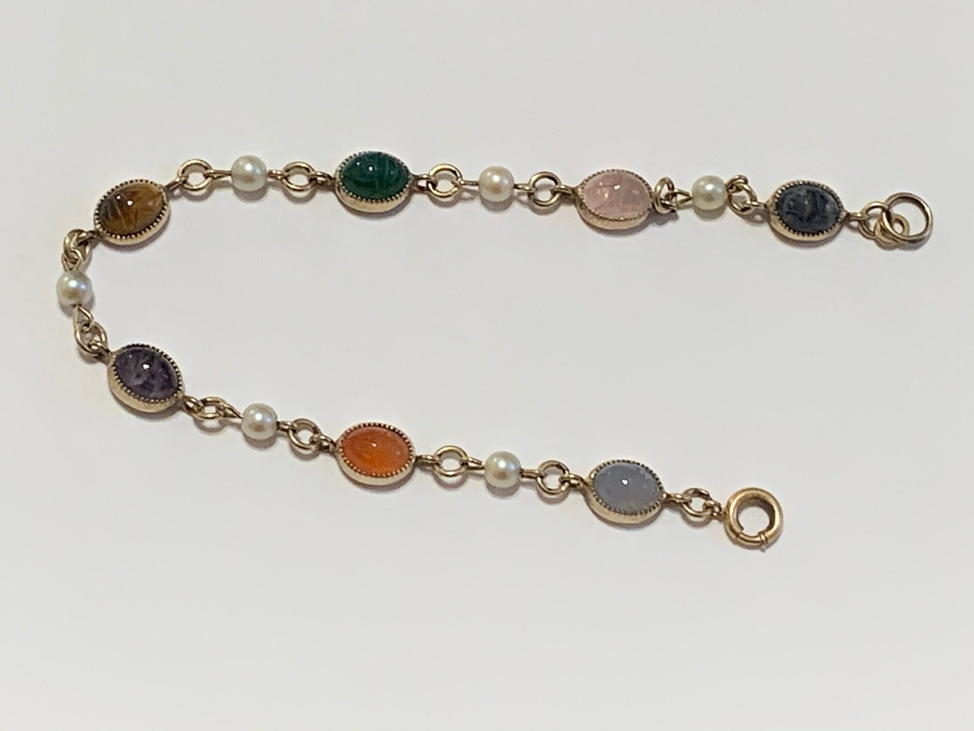VINTAGE ORIGINAL GEMSTONE SCARAB BRACELET.