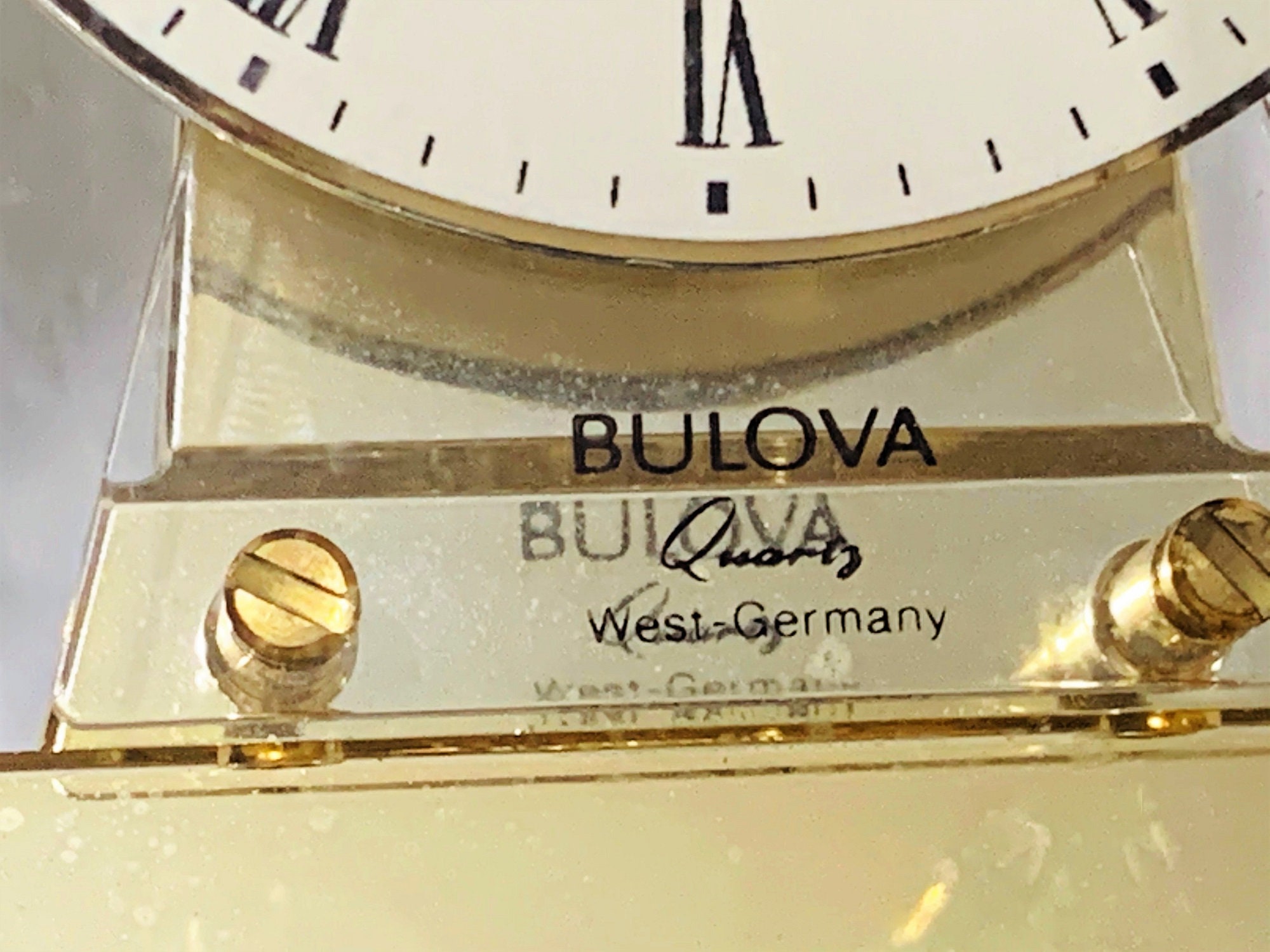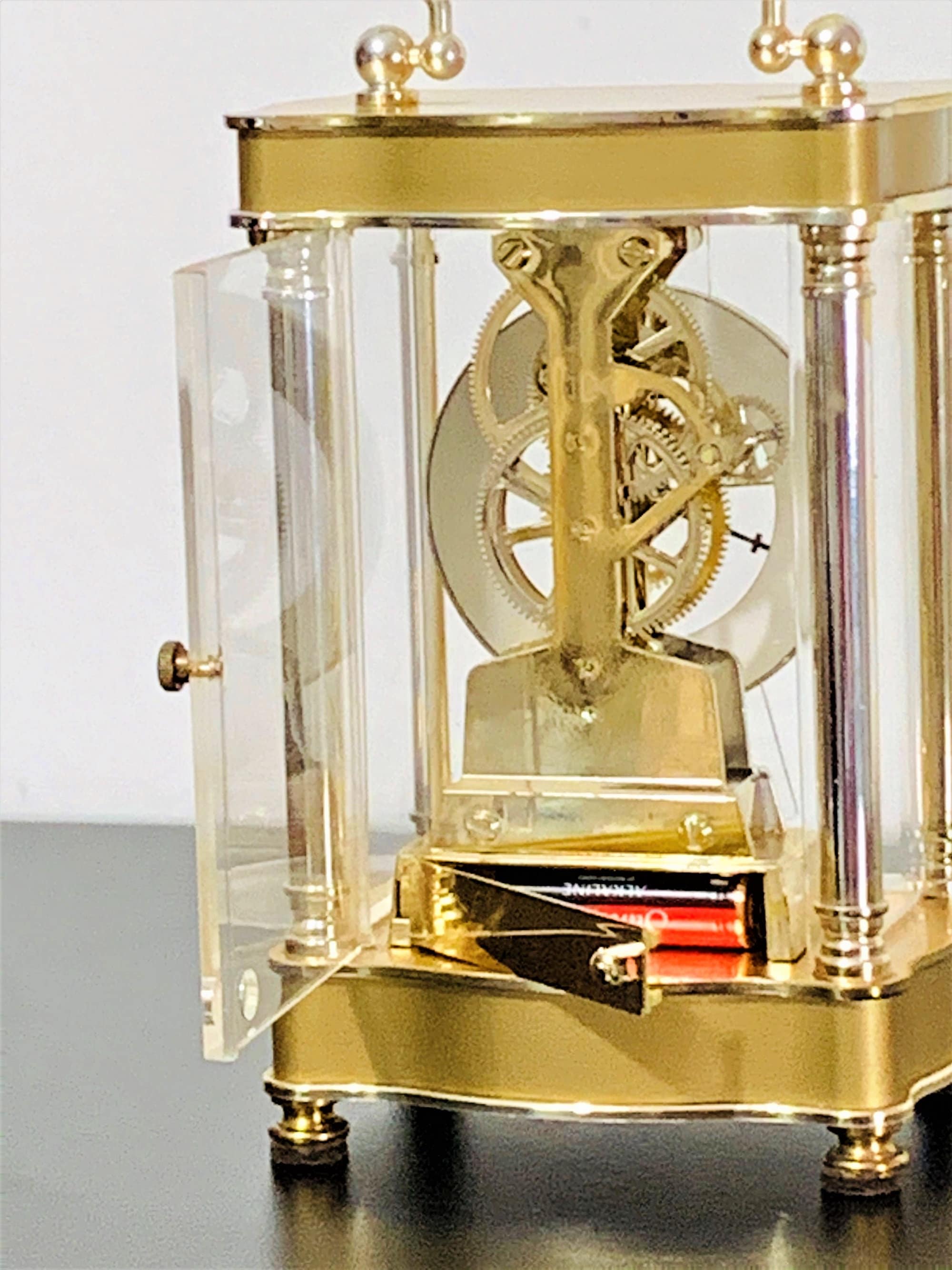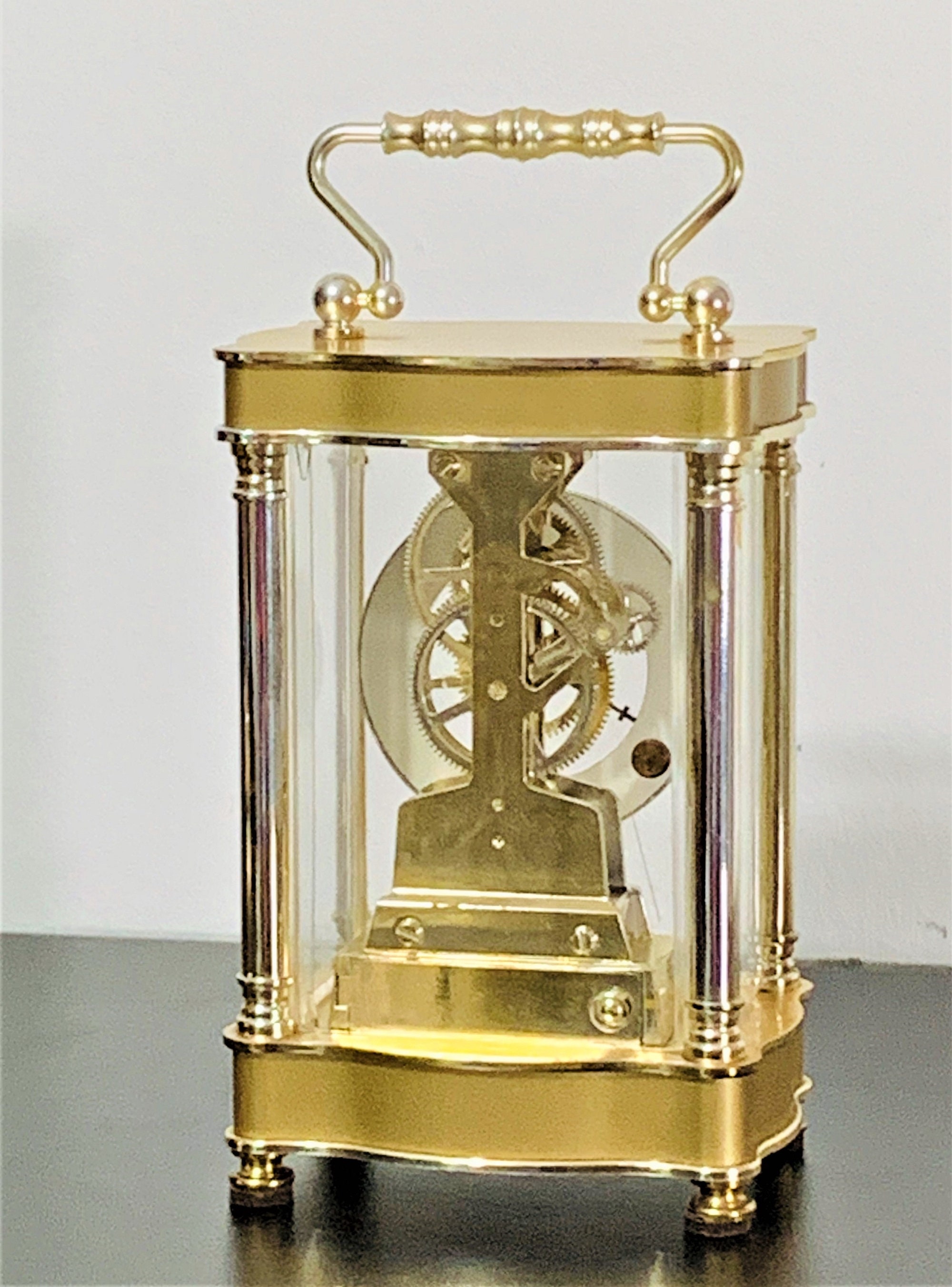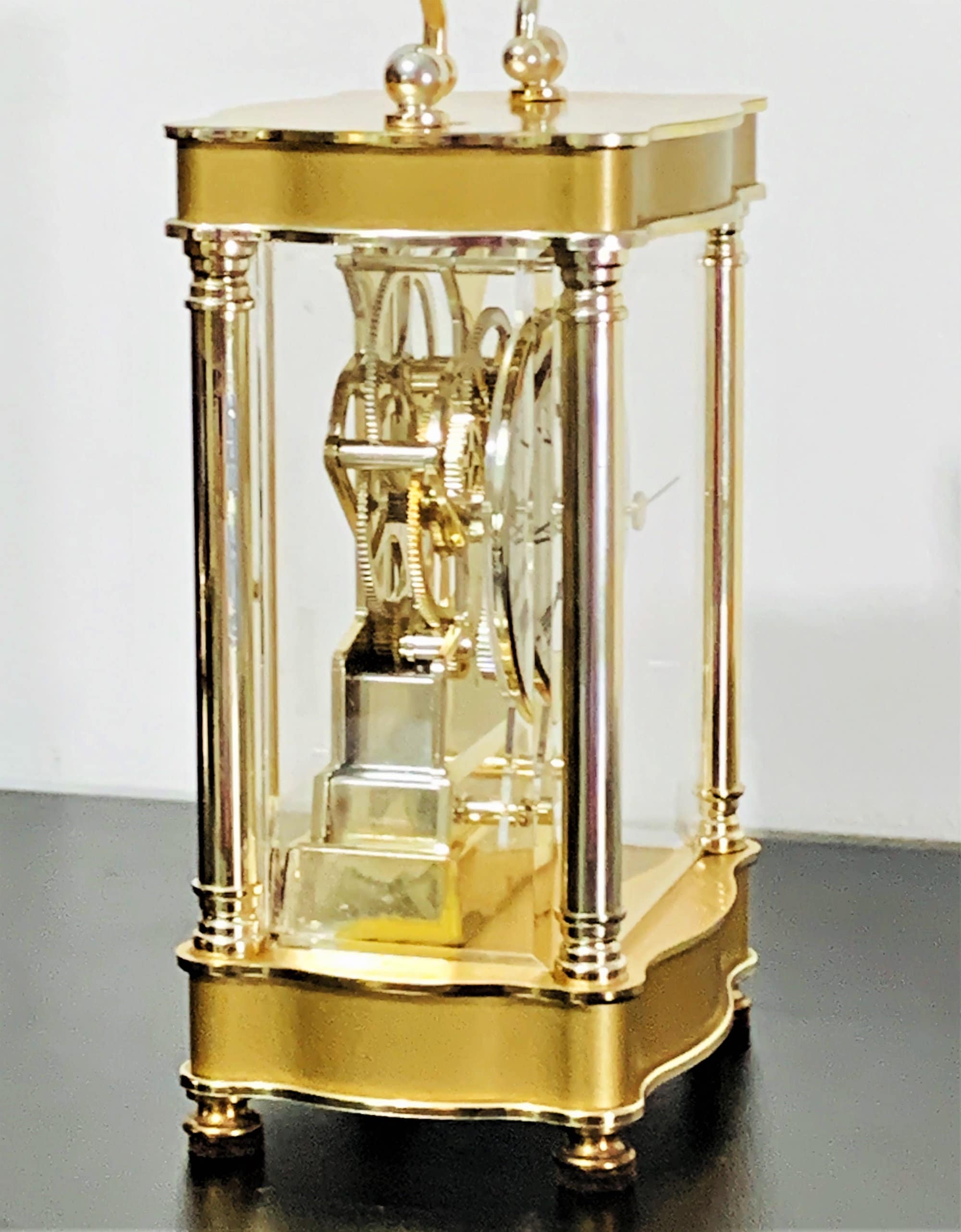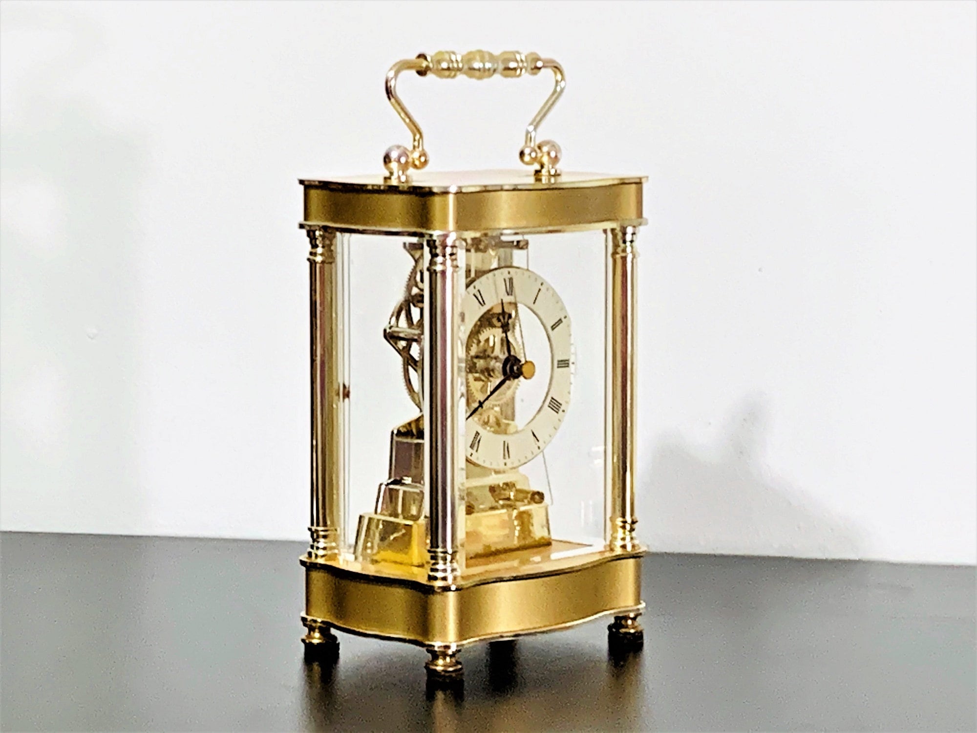 BULOVA WEST GERMANY QUARTZ CARRIAGE SKELETON MOVEMENT MANTLE CLOCK.